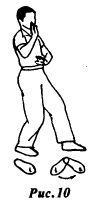 Мы подошли к изучению передней боевой позиции. Для того чтобы ее принять необходимо из предыдущего положения (рис.10) перенести вес тела на левую ногу, а затем переместить правую ногу по дугообразной траектории вперед, принимая боевую переднюю правостороннюю позицию (рис.11).