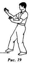 При передвижении назад из передней боевой правосторонней стойки (рис. 17) первой делает скользящий шаг левая нога (рис.18), а затем подтяните правую ногу (рис.19), принимая исходное положение.