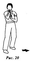 Аналогично выполняются передвижения в стороны. Если необходимо выполнить шаг влево из передней боевой правосторонней позиции (рис.20) первой перемещается левая нога (рис.21), после чего правая нога подтягивается к левой ноге (рис.22).