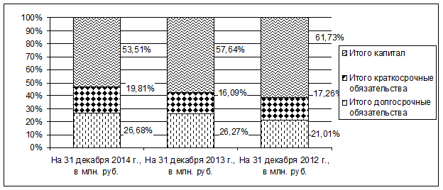Рисунок 2. Структура пассива баланса ОАО РЖД за 2012-2014 гг.