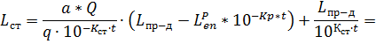 где - Kст и Kр- константы потребления кислорода сточными и речными водами (Kст=0.2; Kр=0.12);