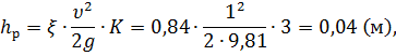 где К – коэффициент, учитывающий увеличение потери напора за счёт засорения решётки, К = 3.