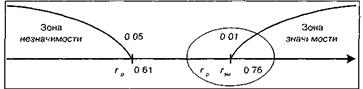 Для нахождения уровня значимости обращаемся к таблице 21 Приложения I в которой приведены критические значения для коэффициентов ранговой корреляции Подчеркнем что в таблице 21 Приложения 1 как и в таблице для линейной корреляции Пирсона все величины коэффициентов корреляции даны по абсолютной величине Поэтому еще раз напомним что знак коэффициента корреляции учитывается только при его интерпретации Однако в отличие от таблицы критических значении пирсоновскои корреляции в таблице 21 Приложения 1 нахождение уровней значимости осуществляется по числу n — те по числу испытуемых В нашем случае n - 11 Для этого числа находим r =0 61 для 0 05 r ~ 0 76 для 0 01 В стандартной форме записи это выглядит следующим образом