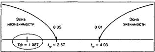 Число степеней свободы в нашем случае будет к — п - 2 = = 7-2=5 По таблице 16 Приложения 1 для к = 5 находим критические значения критерия Стьюдента, они равны соответственно для Р< 0, 05 tKp = 2, 57 и для Р< 0, 01 tKp =4, 03 Влринятой форме записи это выглядит так