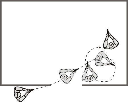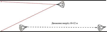 Сотрудник №2 находится в 5-7 метрах лицом к своему напарнику и, контролируя его тыл, осуществляет движение вперёд на 10-12 метров.