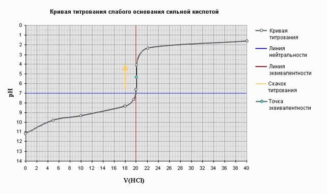 Задание. Построить кривую титрования 20 мл 0, 1н раствора NH3× H2O раствором HCl той же концентрации.