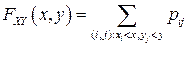 По двумерному закону распределения вероятность попадания дискретного случайного вектора в любую область определяется по формуле: