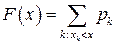График ФР является кусочно-постоянным со скачками в точках , являющихся его возможными значениями, величина скачков определяется вероятностями .