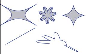 Опытным путем изучите действие фильтров группы Distort (Деформация) на различные типы объектов. Примеры использования различных фильтров к нескольким объектам приведены на рис. 7.30—7.36. Для изучения действия фильтров деформирования на объекты нарисуйте несколько различных фигур и линий и введите текст, не забыв преобразовать его в контуры. Выделите все нарисованные объекты и наблюдайте, как они изменяются при действии разных фильтров с различными параметрами.