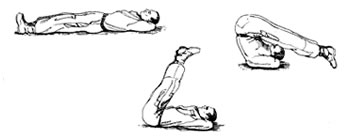 Из исходного положения упор лежа лечь на живот и перевернуться на спину (1), поднять ноги не сгибая в коленях (2), коснуться носками пола за головой (3) (если нет касания, упражнение считается невыполненным), вернуть ноги в исходное положение. Упражнение № 3