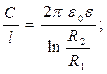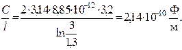 Напряжённость электрического поля между жилой и оболочкой вычисляется с помощью теоремы Остроградского – Гаусса: