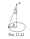 Задача 12. Прямой бесконечно длинный проводник с током I = 50 А согнут так, что между частями его образовался угол j = 1200. Определить индукцию магнитного поля в точках, лежащих на биссектрисе угла и удалённых от вершины его на расстояние а = 5 см (рис. 13.22). Ответ: 1) В 1 = 3, 46× 10 - 4 Тл; 2) В 2 = 1, 16× 10-4 Тл. Задача 13. По тонкому проволочному кольцу течёт ток. Не изменяя силы тока в проводнике, ему придали форму квадрата. Во сколько раз изменилась магнитная индукция в центре кольца? Ответ: Задача 14. По контуру в виде равностороннего треугольника течёт ток I = 40 А. Сторона треугольника а = 30 см. Определить магнитную индукцию Ответ: В = 2, 4× 10-4 Тл. Задача 15. По проводнику в виде тонкого кольца радиусом R = 10 см течёт ток I = 80 А. Найти магнитную индукцию В в точке, равноудалённой от всех точек кольца на r = 20 см. Ответ: В = 6, 28× 10-5 Тл.