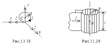 Задача 34*. Тонкая лента шириной l = 40 см свёрнута в трубку радиусом R = 30 см. По ленте течёт равномерно распределённый по ширине ленты ток I = 200 А. Определить магнитную индукцию на оси трубки в средней точке (рис 13.29). Ответ: В = 3, 49× 10-4 Тл.