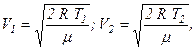 Укажем на горизонтальной оси скоро- стей положение наиболее вероятной скоро- сти V 1 и V 2.