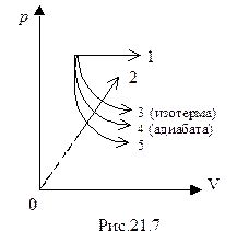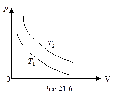 Задача 2. На рис.21.6 изображены две изотермы для одной и той же массы идеального газа. Какая из температур больше?