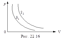 Задача 6. На рис. 22.16 изображены две изоэнтропы для одной и той же массы идеального газа. Какая из энтропий больше?