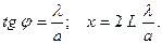 Так как угол j мал (L = 1 м, а = 2 . 10 –5 м), то sin j» tg j: