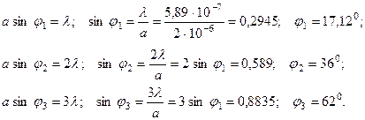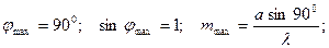 Каждому значению т, начиная с т = 1, соответствуют минимум освещенности и определенное значение угла j, под которым идут лучи, дающие этот минимум.