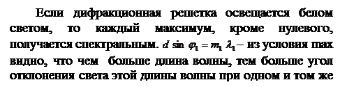 Поэтому белый свет после прохождения решетки даст спектр в каждом порядке (длины волн видимой части спектра от 400 нм до 800 нм). При этом возможно наложение спектров друг на друга в разных порядках (линии разных порядков видны под одним углом) (