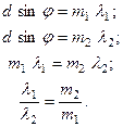 Зная порядки максимумов (линий), можно из условия максимума найти d: