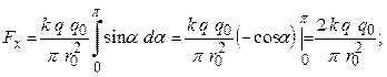 Решение. Определить силу здесь можно как результирующую элементарных сил , действующих на заряд со стороны бесконечно малых элементов dl полукольца (см.рис.7.7).