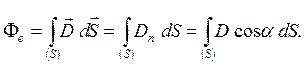 где Полный поток Fе электрического смещения через поверхность S называется алгебраическая сумма электрических потоков через элементарные площадки, на которые может быть разбита поверхность S: