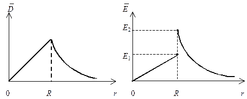 Из решения и графиков видно, что линии индукции электрического поля непрерывны, от среды не зависят, а линии напряжённости электрического поля терпят разрыв на границе двух сред. В эбоните напряжённость меньше, чем в воздухе, следовательно, плотность линий (число линий, пронизывающих единицу площади) в воздухе больше, чем в эбоните. Ответ: а) D 1 = 10-10