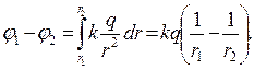 Рис.9.1 Разность потенциалов равномерно заряженной сферы (точечного заряда)