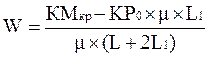 L1 = L / 2 = 100 / 2 = 50 мм = 0, 05 м Fтр1 = N ´ m М1(Fтр1) = Fтр1 ´ L1 = N ´ m ´ L1 Заменим в последней формуле силу N через W из выражения (6): М1(Fтр1) = (KP0 + 2W) ´ m ´ L1 Подставляя полученные выражения, выражение (8) в уравнение (7), определим силу зажима W: КМкр - W ´ m ´ L - (KP0 + 2W) ´ m ´ L1= 0