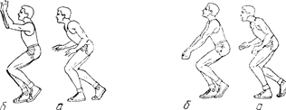 Рис. 20. Стойка (а), исходн. положение (б). Рис. 21. Стойка (а), исходн. положение (б).