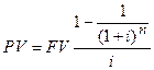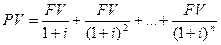 Если доход, получаемый каждый год постоянен (FV), имеем геометрическую прогрессию со знаменателем 1/(1+i):