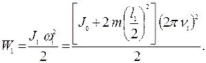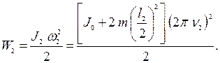 Момент инерции гири рассчитываем как для материальной точки, m – масса гири. J 2 – момент инерции всей системы после сближения гирь, Выразим угловую скорость через частоту вращения по формуле и подставим в уравнение (2): w = 2pn