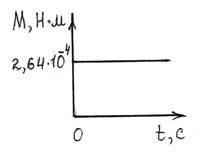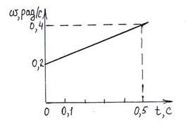 Момент силы в данной задаче - постоянная величина, поэтому графиком будет прямая линия параллельная оси времени (рис.3). Угловая скорость возрастает линейно с увеличением времени. Графиком будет прямая линия (рис.4). Для построения графика необходимо вычислить значения угловой скорости по формуле (3) и результаты представить в виде таблицы 1.