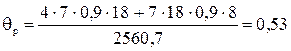 Принимаем процентное содержание тормозных четырехосных и восьмиосных вагонов в поезде a4=a8=90% и расчетное нажатие тормозных колодок на ось: Кр(4)=Кр(8)=7 (тс). Расчетный тормозной коэффициент поезда: