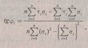 где п — число определений. Нормативные значения углов внутреннего трения ф и удельного сцепления с вычисляются по методу наименьших квадратов для всей совокупности опытных значений сопротивления срезу тг и нормального напряжения о1 по формулам: