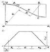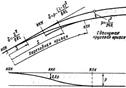 Если такой задачи не возникает, то обычно стремятся к тому, чтобы при смещении оси пути или уширении междупутья на кривой по возможности меньше переустраивать существующий путь. Для этого необходимо, чтобы расстояние между НККc и НККп, b1 было наименьшим. Это смещение равно: *при смещении внутрь кривой b1=Tп-(Тс-y/sinα)=(Rп-Rс)tg(α /2)+y/sinα. Для того чтобы проектная кривая начиналась в той же точке, что и существующая, необходимо, чтобы b1=0. Тогда проектный радиус, отвечающий этим условиям: Rп’=Rc+y/(sinα *tg(α /2)) расстояния между КККс и КККп b2=Tc-(Tп-c)=(Rc-Rп)tg(α /2)+y/sinα удлинение линии Δ L=Lc-Lп; Δ L=(Kc+b1)-(Kп+b2) Для определения смещений оси пути или уширения междупутья строятся совмещенные угловые диаграммы существующей и проектной кривых. Угловая диаграмма существующей кривой строится по точкам НККс и КККс и откладывается, таким образом, по оси расстояний К в некотором масштабе без искажений. Для того чтобы построить совмещенную с этой угловой диаграммой угловую диаграмму проектной кривой, от НККс надо отложить расстояние b1, а от КККс — расстояние b2. Разность площадей угловой диаграммы существующей и проектной кривых должна быть равна смещению у: y=ω =(b1+b2)*α /2 Если возникает разница 0, 01≤ Δ y≤ 0, 1, то невязка распределяется по длине смещения. Площади угловой диаграммы существующей кривой определяются формулой ω =K2/2Rc. Площадь, ограниченная угловой диаграммой проектной кривой, должна определяться формулой ω =K2*tgψ п/2, где tgψ п - тангенс угла наклона угловой диаграммы к оси К, определяемый через угол поворота и длину кривой. tgψ п=α /(Kc+b1-b2), а) к< b1 - y=k2*tgψ п/2, б) b1< k< KC - y=(k2* tgψ п/2)-(k-b1)2/2Rc, в) к> (b1+Kc) - y=(Kп2*tgψ п/2)+(k+Kп)α -(k-b1)2/2Rc, к — расстояние от начала угловой диаграммы. Смещение в последней зоне: yв=y- k02*tgψ п/2, yв= y- k02/2Rc. Окончательное смещение в каждой точке существующего пути относительно кривой смещенного пути определяется формулой: yOK=y+p+Δ, если разбивка предполагается от существующей сбитой кривой, то в формуле должна быть учтена полученная для выправки кривой рихтовка.