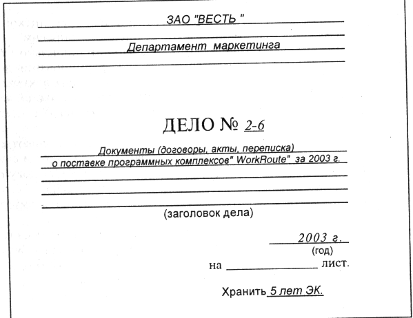 Рисунок Ж.1 − Форма обложки дел постоянного и временного хранения
