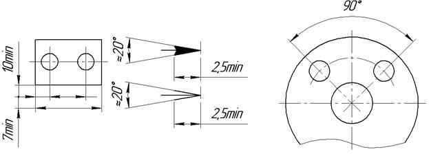 Допускается заменять стрелки точками или засечками, наносимыми под углом 450 к размерным линиям, если между выносными линиями невозможно разместить стрелку (рис. 3.13).