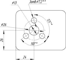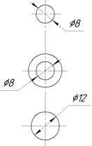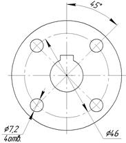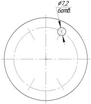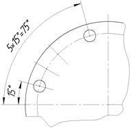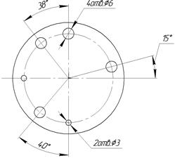 При нанесении размеров элементов, равномерно расположенных по окружности (например, отверстий), вместо угловых размеров, определяющих взаимное расположение элементов, указывают только их количество (рис. 3.39 – 3.41).