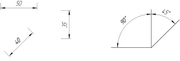 А б Рис. 3.25 Размеры фасок, имеющих другие углы, наносят по общим правилам – двумя линейными размерами или линейным и угловым размерами (рис. 3.26).