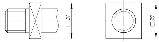 Если на чертеже трудно отличить сферу от других поверхностей, допускается наносить слово «Сфера» или знак «О», например, «Сфера Ø 18, OR12». Диаметр знака сферы равен высоте размерных чисел на чертеже. Размеры квадрата наносят, как показано на чертеже 3.20.