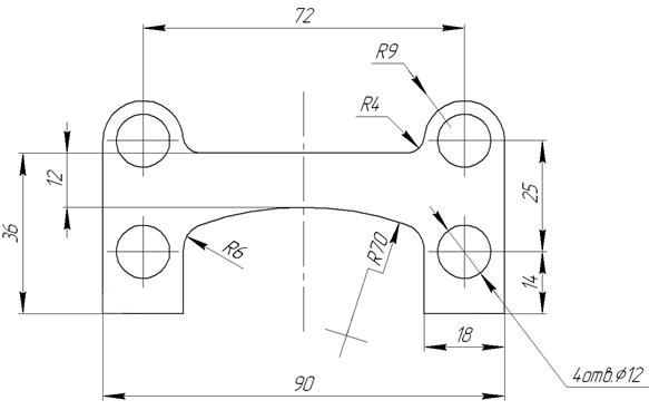 При наличии у детали скруглений размеры частей детали наносят без учета скруглений, с указанием радиусов скруглений (рис. 3.35).