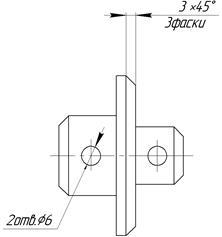 Размеры фасок под углом 450 наносят, как показано на рис. 3.25 а. Допускается фаску под углом 450, размер которой в масштабе чертежа 1 мм и менее, не изображать и размеры ее указывать на полке линии – выноски, как показано на рис. 3.25 б.