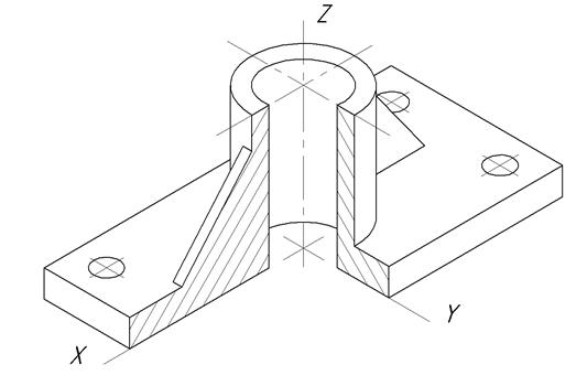 Пример аксонометрической проекции условной детали с вырезом приводится на рис. 5.6.