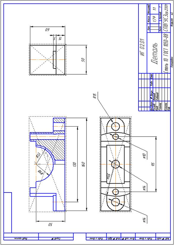 Рис. 5.10 Литература 1. Машиностроительное черчение: учеб. пособие / сост.: Кишко А.В., Соловьева Л.Б., Соломон Г.Г., Шумейко И.А.; ГОУ ВПО СПбГТУРП. – СПб., 2007. – 51 с.: ил. 2. Федоренко, В.А., Шошин А.И: справочник по машиностроительному черчению. – М.: ООО ИД «Альянс», 2007. 3. Чекмарев, А. А. Инженерная графика: учебник / А. А. Чекмарев. – М.: Высшая школа, 2000.