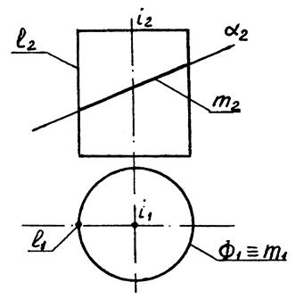 Можно сформулировать алгоритм решения ГПЗ для l-го случая. Если оба ГО проецирующие, то: 1) Искомый общий элемент уже непосредственно задан на чертеже; 2) Его проекции принадлежат основным проекциям пересекающихся ГО; 3) После проведения анализа задачи решение ее на чертеже сводится к простановке соответствующих обозначений (для 1 ГПЗ - точки пересечения линии с поверхностью, для 2 ГПЗ - линии пересечения двух поверхностей).