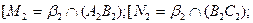 2.2. Вторая (горизонтальная) проекция линии M1N1 определяется по принадлежности точек М1 и N1 к не проецирующим прямым (A1B1) И (B1C1).