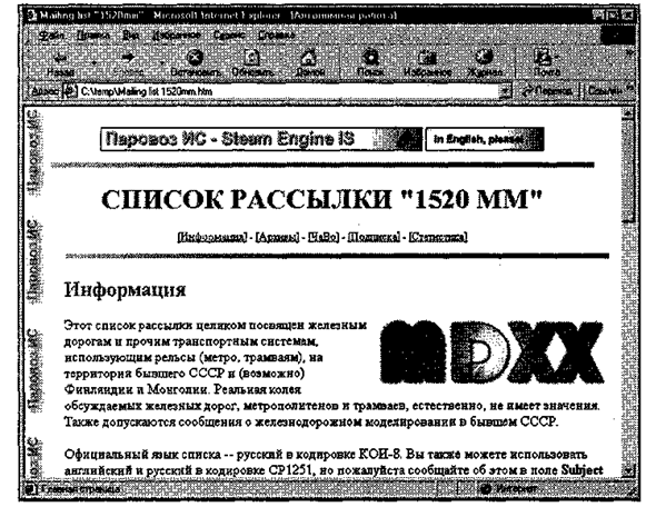Рис. 8.3. Список рассылки, посвященный отечественным железным дорогам