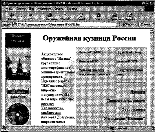 Рис. 8.4. Web-страница отечественного предприятия Адрес URL состоит из трех частей. 1.Указание службы, которая осуществляет доступ к данному ресурсу (обычно обозначается именем прикладного протокола, соответствующего данной службе. Так, например, для службы WWW прикладным является протокол HTTP (HyperText Transfer Protocol — протокол передачи гипертекста). После имени протокола ставится двоеточие (:) и два знака «/» (косая черта): https://... 2. Указание доменного имени компьютера (сервера), на котором хранится данный ресурс: