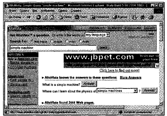 Рис. 9.4. Поиск информации по ключевым словам с помощью поисковой системы AltaVista